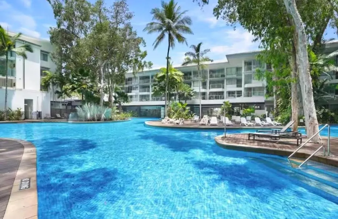 Stunning Top Floor Apartment Views To Palm Coveの設備の整った台所の便利さを楽しみ、自家製の食事を用意できます。 最寄りのバス停Williams Esplanade at Caryota Streetは700メートルほどの距離にあります。 アパートのプールで泳ぐこともできます。